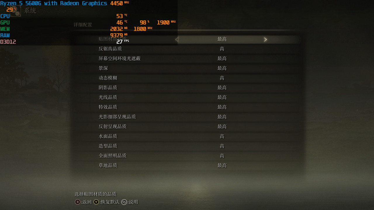 本以為5600G扛不住老頭環的,沒想到還有31FPS的幀率。