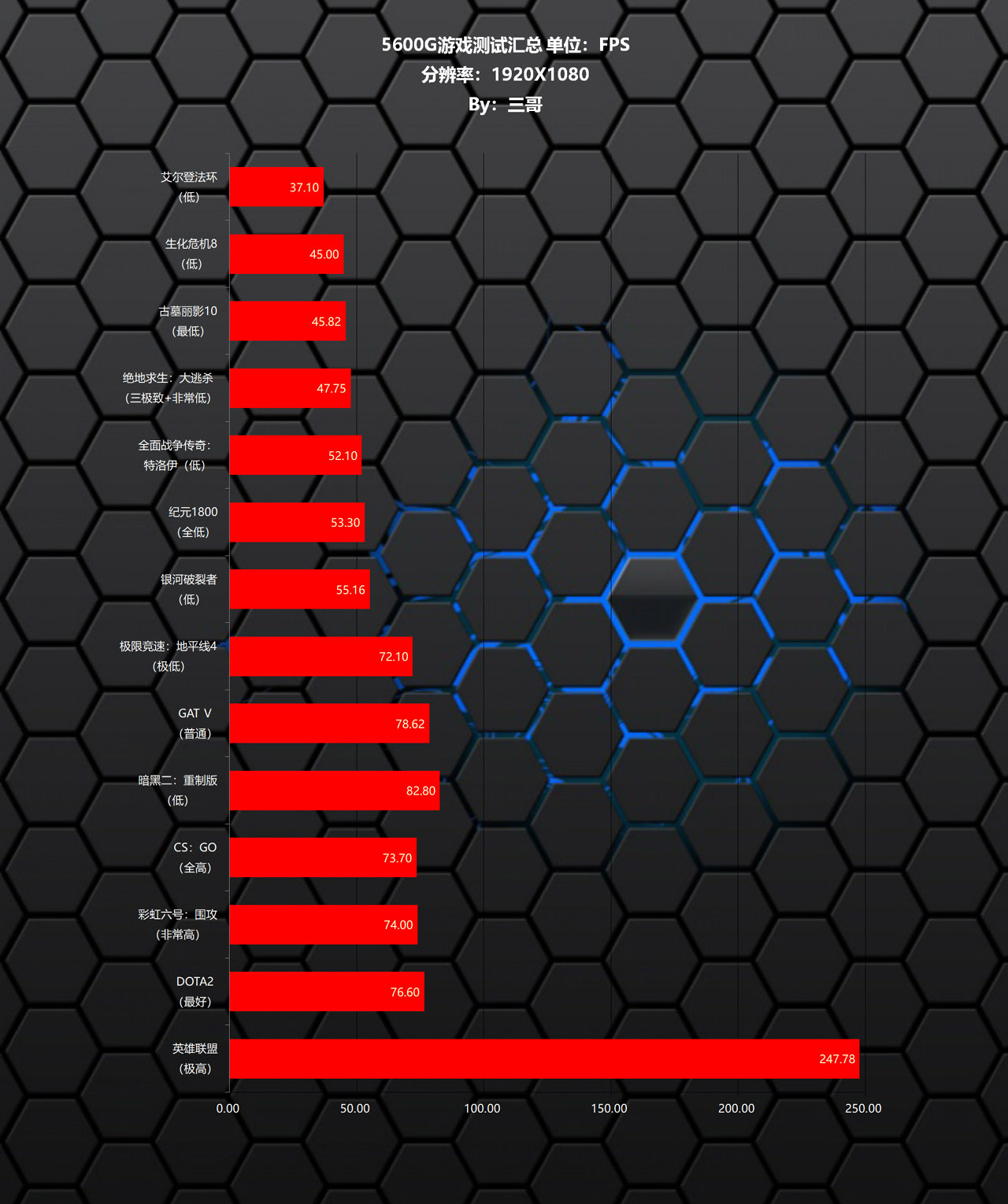 除了老頭環,5600G能超過40FPS的遊戲還不少,甚至有些遊戲開高特效都能達到60FPS以上。