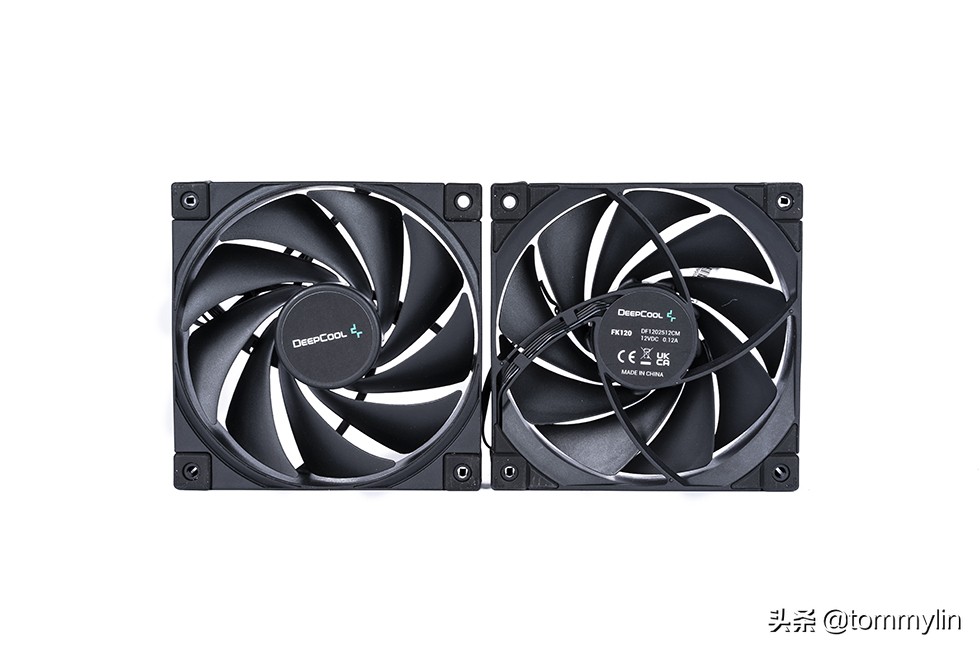 ▲ AK620所使用風扇的型號為FK120,4Pin PWM介面,額定引數為12V/0.12A,最大功率為1.44W,採用FDB軸承等靜音設計,轉速範圍為500-1850RPM,使用壽命可達五萬小時,噪音控制在28dB以內,風扇可根據系統負載動態調節轉速,方正的外觀加上9葉風扇分搭配,視覺感官上十分舒服