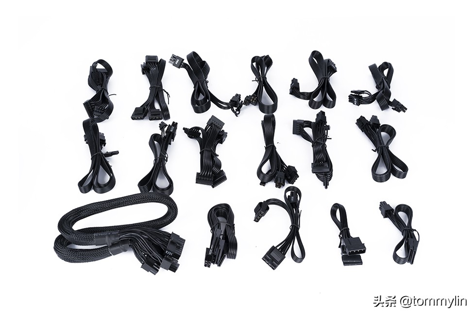 ▲ 標配有6根6+2Pin的PCI-E顯示卡輔助供電線,2根4+4Pin的CPU輔助供電線以及6根SATA或IDE裝置供電線,1根IDE轉SATA3.3介面的供電線