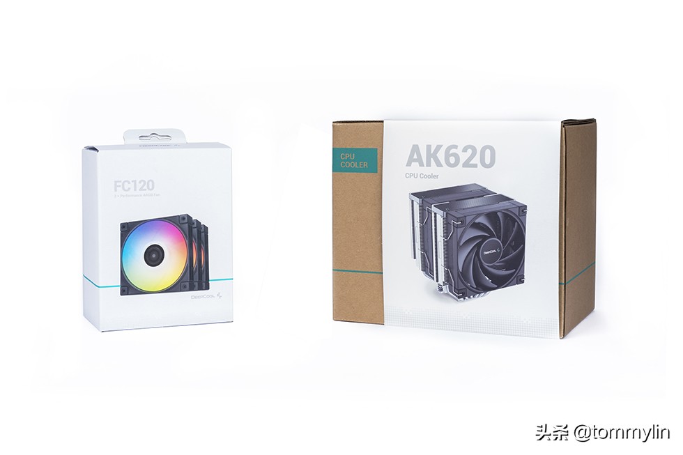 ▲ 散熱方面由於是主打風冷,本次選用了九州風神的AK620,不為別的,作為啟用全新設計ID後的九州風神產品序列中的一員,其外觀設計深得我心,全新的外部包裝也很素雅簡潔(請九州給設計團隊加雞腿,不止要加一隻)。當然,不到300元的售價,TDP 260W,價效比也絕對爆表,同時為了搭配機箱的RGB燈效,我選用了與散熱同款的FC120進行將原有風扇進行替換