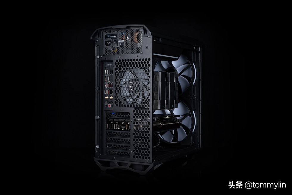 ▲ Torrent Compac 的正面全面繼承了Torrent 的設計元素,開放式格柵設計與2*180 mm前置風扇,獲得最大的進氣量,機箱背部幾乎遍佈散熱開孔,並預留了一個120mm風扇位,確保了風道順暢