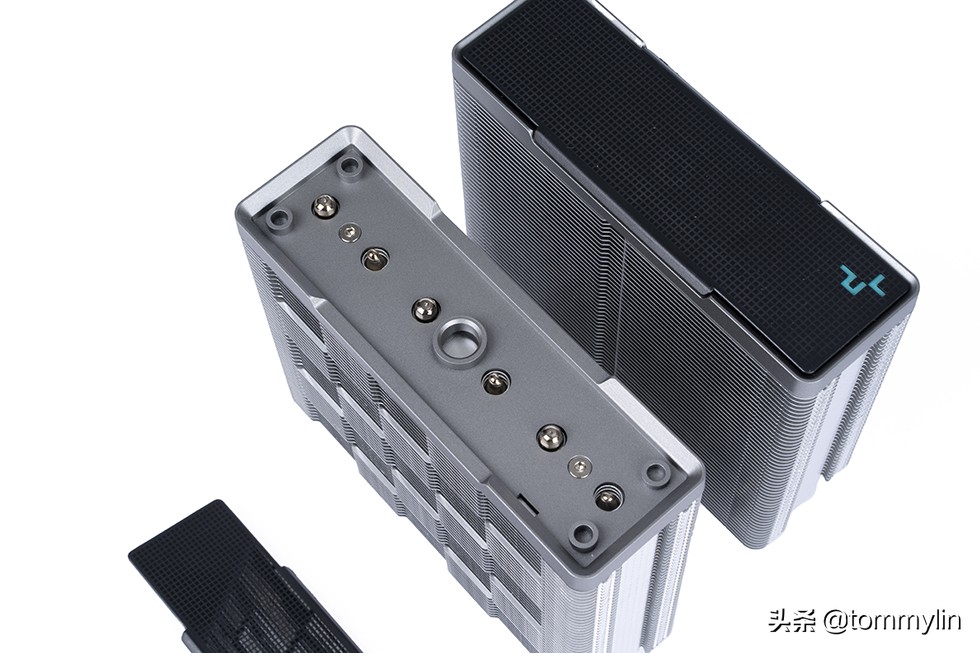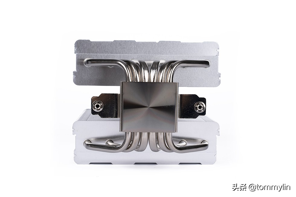 ▲ AK620配備了6根6mm折彎純銅鍍鎳燒結熱管,熱管採用了穿FIN工藝連線,同時熱管的排布也進行了最佳化,避免與記憶體槽產生干涉,以求達到更好的硬體相容性,散熱器在完整狀態下可相容高度為43mm以下的記憶體條,假如是拆掉前置散熱風扇,可以相容高度為59mm以下的記憶體條