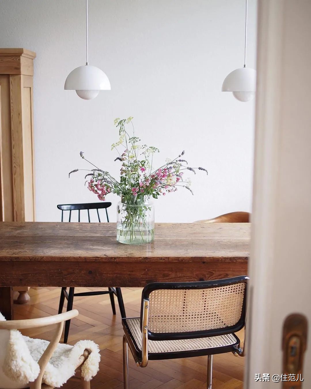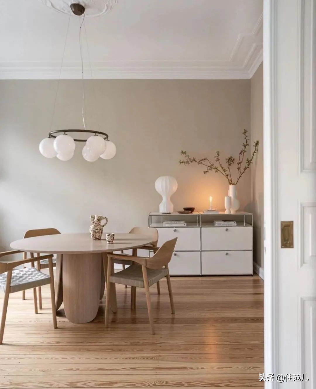雖然他們還有半黑半白的版本,但是遠不如通體都是白色的這款好搭,非常適合中古或者侘寂風格的家居環境。