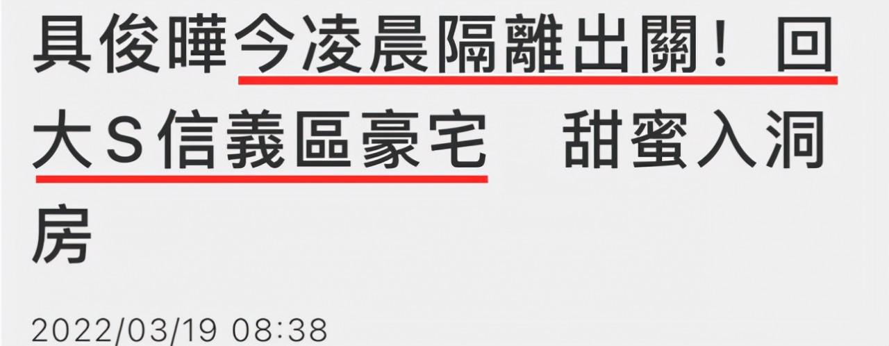 3月19日,是具俊曄在酒店隔離10天結束的日子,按照規定,具俊曄需要在早上進行最後一次核酸檢查,如果為陰性的話,最快將於20日出關,到時便可與大S見面,以訴說20年來的思念,洞房花燭。
