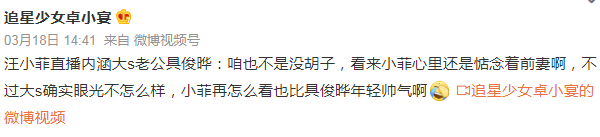 有網友此前在小S評論區留言,稱具俊曄是國民姐夫,小S則回應道,是自己一個人的姐夫 ,可見對姐夫的喜歡非比尋常。