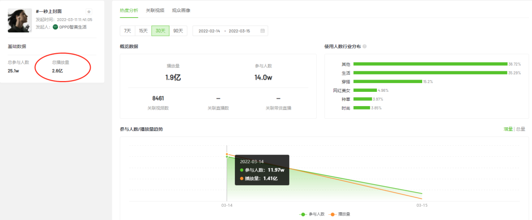 同時,在話題中植入購買“OPPO Enco X2”的連結,可以直接點選購買,提升新品曝光和轉化機率。截至目前,該話題已有約25.1w人參與,話題相關影片播放量突破2.6億,且熱度還在持續上升。
